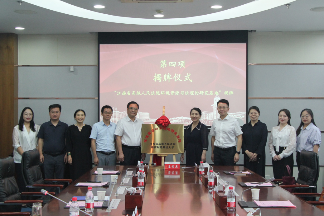 9月13日,江西省高级人民法院与中南财经政法大学在中南财经政法大学,为互设在对方的江西省高级人民法院环境资源司法理论研究基地、中南财经政法大学校外法学实践教学基地举行揭牌仪式。中南财经政法大学党委书记侯振发、江西省高级人民法院副院长胡淑珠等出席本次活动。